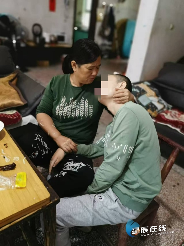 (于敏华细心照顾儿子。)