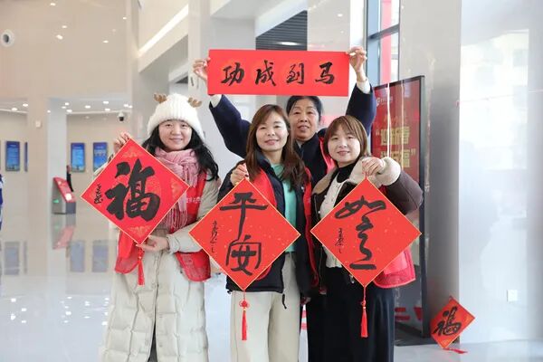 宣纸上,或苍劲有力、或清秀雅致的“福”字跃然纸上,“平安喜乐”“万事顺意”等吉祥话语的对联整齐铺开,场馆内墨香四溢。不少家长带着孩子驻足观看,近距离感受传统书法文化的独特魅力,拿到手写“福”字和对联的观众纷纷拍照留念,定格这份独一无二的新春祝福。