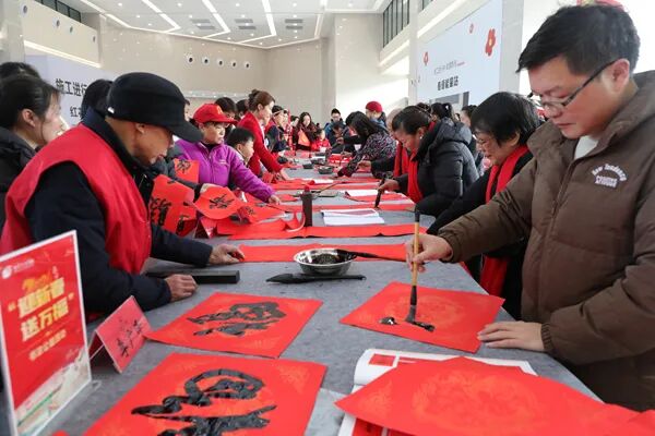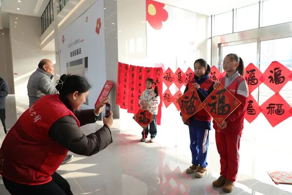 志愿者为来馆观众免费书写“福”字与新春对联。
