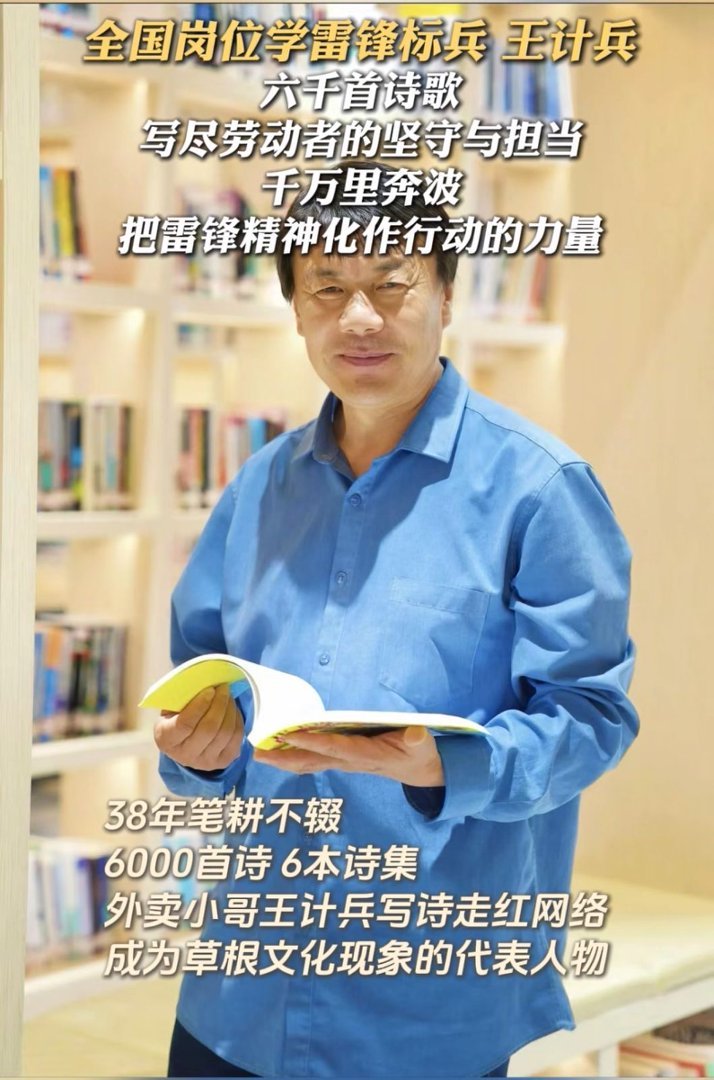 王计兵不仅用诗歌书写着自己的人生,更用自己的善行善举,“手持人间一束光”,既照亮脚下的路,更照亮更多葆有热忱、追逐梦想的人。他曾为老人免费送上外卖,也曾用送外卖备用的绳子拉起跌入泥沟的妇女……这些看似微不足道的善举,却如同一颗颗温暖的种子,传递着爱与希望。