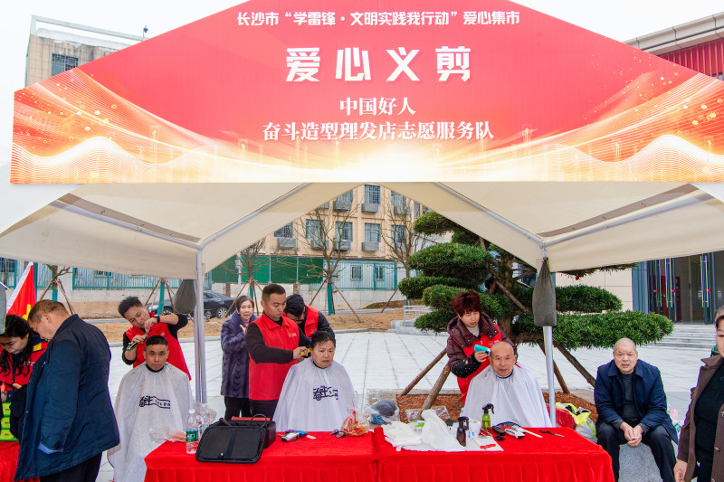 在湖南湘江新区的服务区域,一个特别的理发摊位前排起了小队。来自新区的“中国好人”贺国辉正手持剪刀,耐心地为一位老人修剪头发。他一边理发一边和老人唠家常,手法娴熟,笑容温暖。“我已经连续好几年参加学雷锋活动了,能用自己的手艺为大家做点事,心里特别高兴。”贺国辉告诉记者,今天一上午已经为20多位市民理了发,“雷锋精神就是要落实在行动上,让老百姓真切感受到温暖。”
