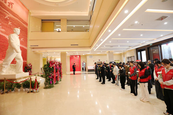上午,全体人员在雷锋生平事迹陈列馆序厅举行敬献花篮仪式。