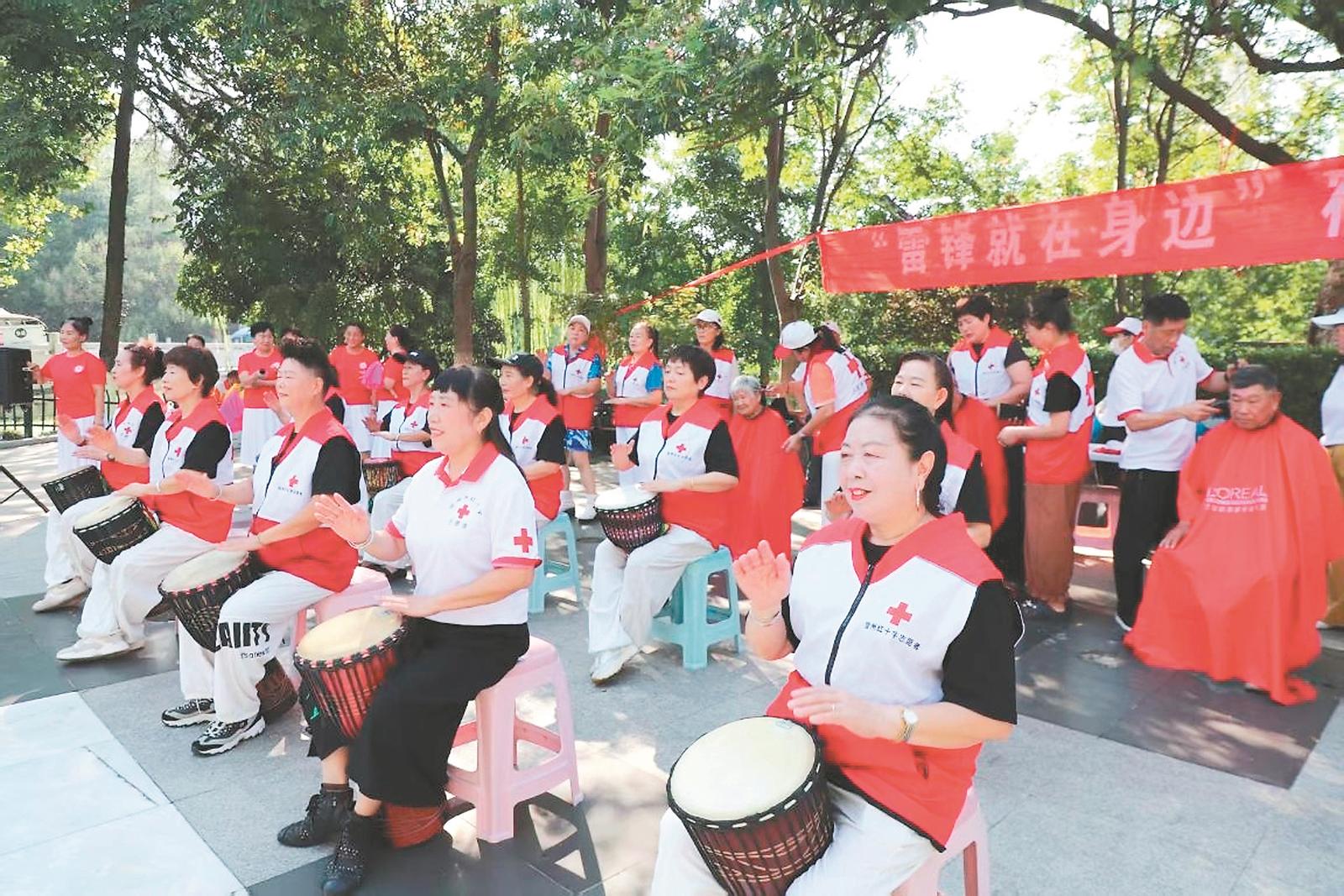 日前,在宿州市埇桥区东仙桥公园里,该市红十字志愿服务队组织党员开展“雷锋就在身边”志愿服务,举办义诊、义剪和文艺演出等活动。通讯员 张成伍 摄(来源:安徽日报 作者:张成伍)