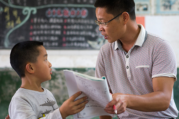 王小义深知教育事比天大,既然选择,就要承担。为了提高孩子们的学习成绩,入校第一个学期他便刻写了46张蜡纸,油印后发给学生练习。因为残疾,做事不便,他就更多地思考:怎样让学生更牢固地掌握知识。为此他不断加强学习,投身教改,把教学与社会实践有机融合,引导学生广泛阅读,自主探究。他的教案反复设计,精打细磨;他的讲课深入浅出、生动有趣。农村缺教具,他就用业余时间制作幻灯片、卡片。教正方体的表面积时,学生第一次接触空间图形,一下子蒙了。为了让学生弄明白,他用一只手拿着锄头挖土,挑回学校与学生一起和泥,师生一起用泥巴制作正方体教具,然后在教学的时候,让学生一边听课,一边对着模型数一数、摸一摸、量一量,通过这种方法,学生很快掌握了正方体知识。这样的教学方式直观有趣,学生非常喜欢。好方法带来好效果,王小义的教学质量一直领先,2015年双峰县首届名师工程评选,全镇200多老师进行统计排名,他排前三,名列前茅。