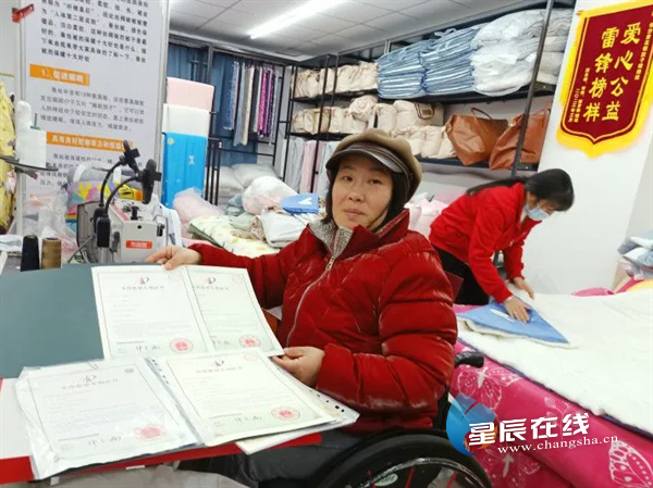 2022年7月,“肚子缝纫姐”线下实体店成立;2024年底,“肚子缝纫姐爱心驿站”作为社区社会组织挂牌。在长沙县人社局、民政局等部门帮扶下,驿站增设手工义塾和爱心专柜,为居民提供缝纫教学和农产品代销服务。