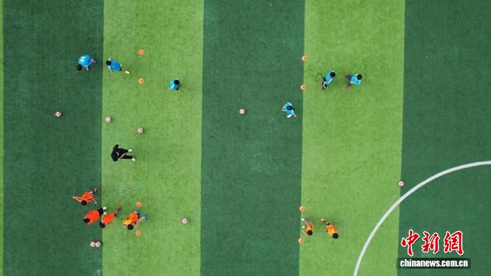 大学生志愿者马进在指导学生开展足球训练。黄新 摄